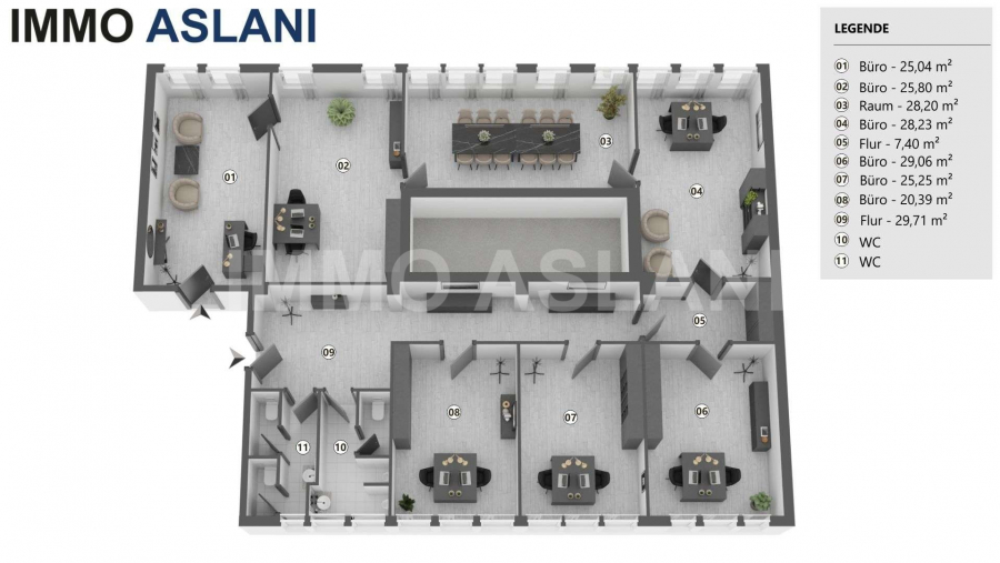 • > Ausstattung: Küche mit Wasseranschluss, Serverschrank, Klimaanlage, zweite Fluchttür